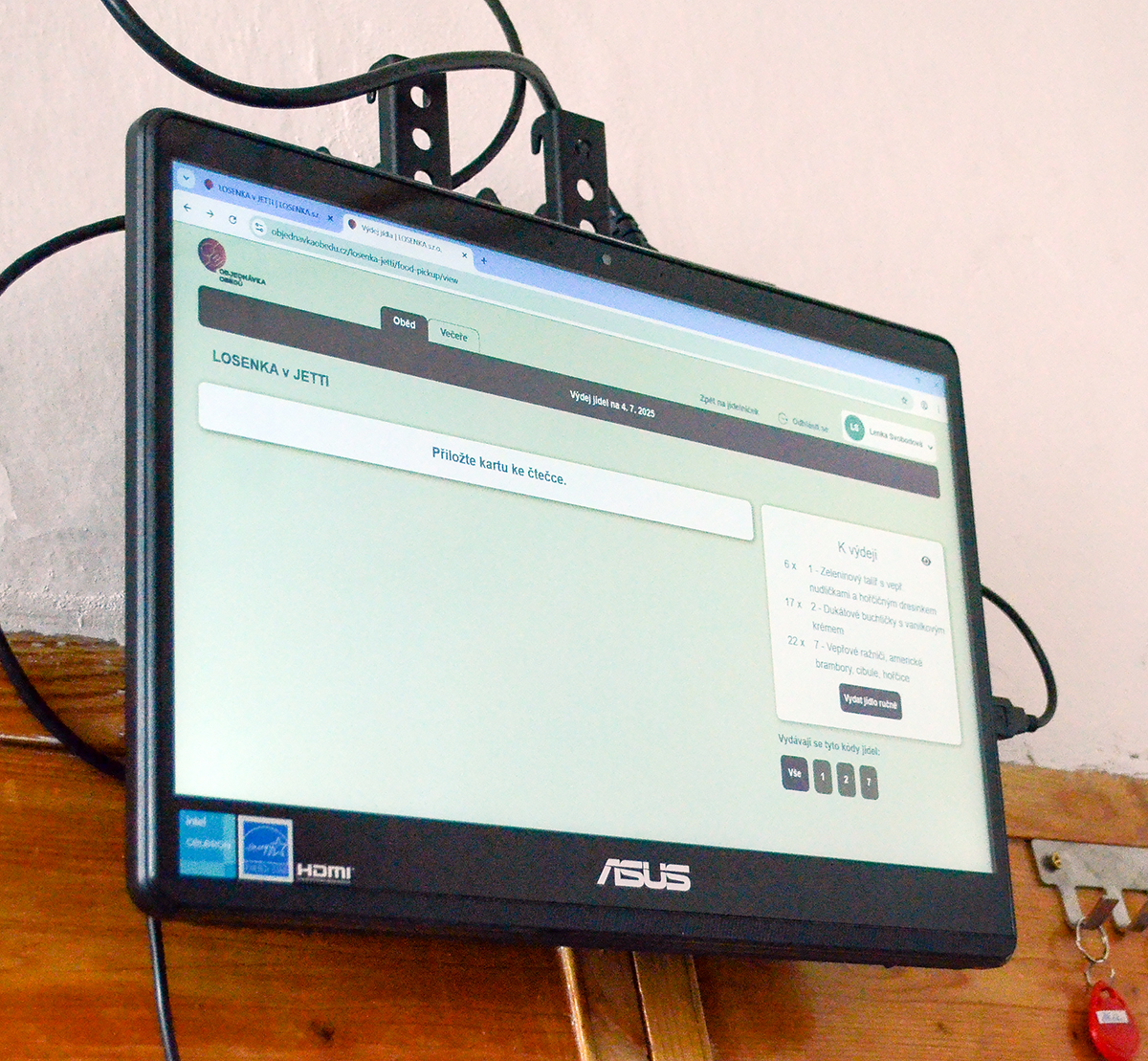 Změna systému se ukázala jako krok správným směrem. Vše funguje automaticky – zaměstnanci si mohou obědy objednávat online přes mobilní nebo webovou aplikaci, případně pomocí čipu přímo na terminálu v jídelně. Výdej probíhá moderně: přiložením čipu se kuchyni zobrazí konkrétní objednávka daného zaměstnance. Díky tomu se výdej zrychlil, minimalizovaly se chyby a zlepšil se přehled o skutečně vydaných porcích.