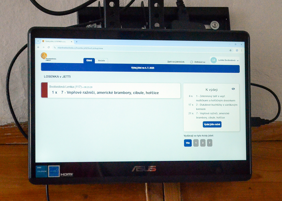 „S objednáváním jídel už nemáme starosti, když si někdo odhlásí jídlo, nebo ho změní, vše v momentě ví i dodavatel. Paní, co každý týden objednávala jídlo na dílně, to ušetřilo mnoho času. To víte, každý dotehdy využil příležitosti a při objednávání jídla si deset minut popovídal, navíc pokud k tomu přidáte, že každý den chtěl někdo něco změnit nebo odhlásit, tak se ten čas spojený s objednáváním nasčítal,“ říká pan Štěrba.