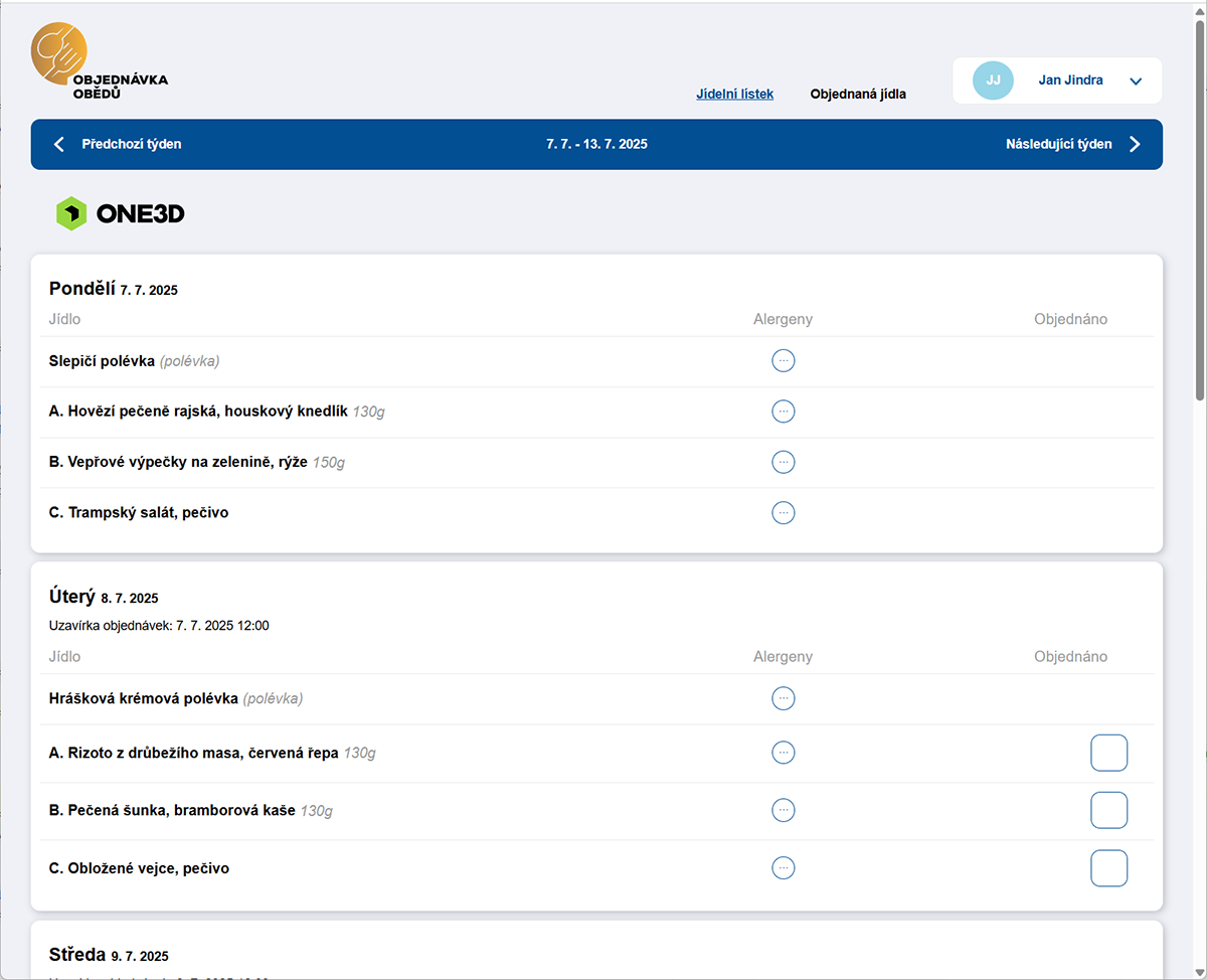 Na začátku si zaměstnanci ONE3D objednávali obědy přes Excel a e-maily. „Bylo to hodně nešikovné a zdlouhavé,“ vzpomínají. Postupně, jak rostl počet strávníků, začalo být jasné, že firma potřebuje systém, který ulehčí práci kuchyni i administrativě.